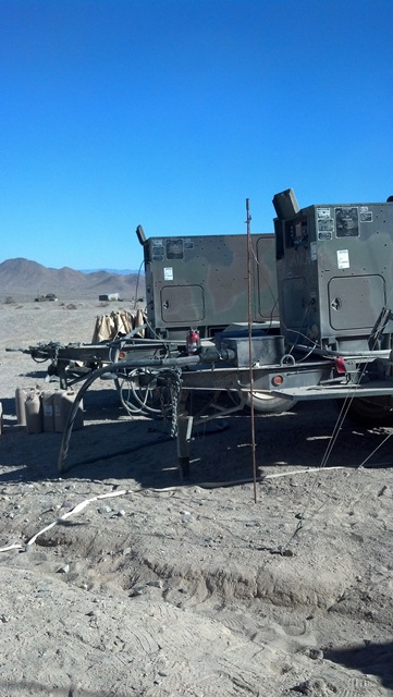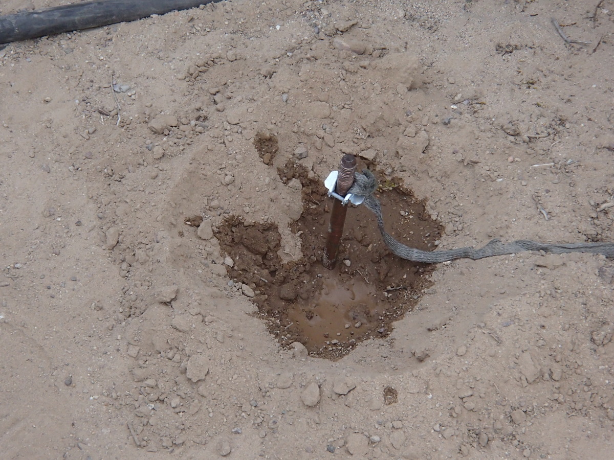 A few other things to remember. First, the ground strap connecting the ground rod to the system has to be tightly secured to it. This means using some sort of camp or nut to connect the two. I can’t count the number of times that I see the ground strap looped around or “tied” to the ground rod. It doesn’t work. Next the type of soil you are going into matters. Dense wet soil is great. Sand and gravel (like what you see here at NTC) is horrible. Unfortunately, you normally can’t pick the type of soil you’ll be putting your ground rod into so if you have horrible soil, make it less horrible by adding water and rock salt to improve its conductivity. This is something you have to do regularly (not just once when you first arrive on site).