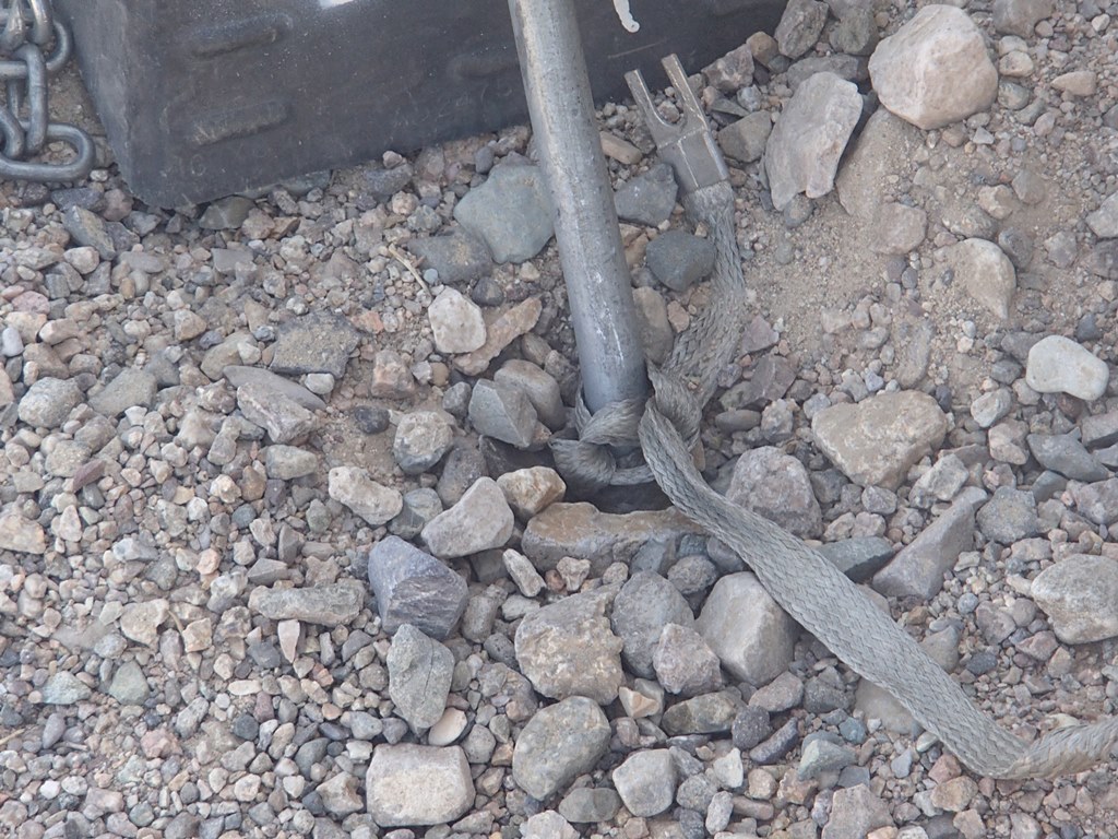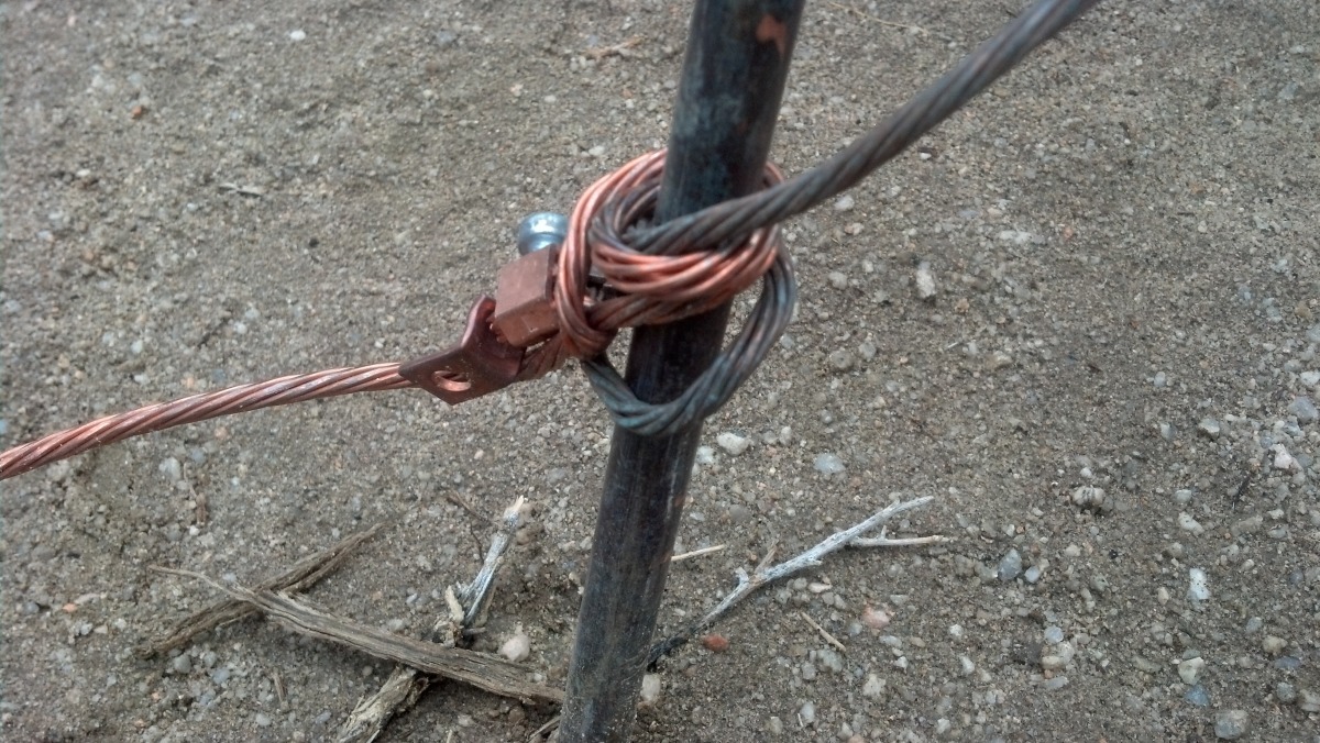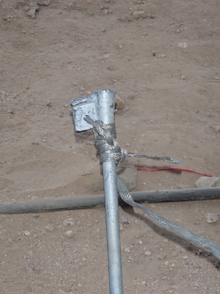 The final system that I see more and more often is the so-called “star” ground which consists of 15 relatively short stakes connected together by a long length of aircraft cable. The idea being that the combined ground potential of the numerous rod into the ground with the surface area of the cable provides an electrical path similar to what you find with a traditional ground rod. In my experience, these systems are significantly easier to setup (not having to go nearly as deep into the dirt) but are also the most likely to be setup incorrectly. When using the star ground it is important to remember that the entire length of cable must be used in order for it to work properly and that tension must be kept across the entire cable to provide the best grounding path. This is normally done by giving each stake a slight turn prior to putting it into the ground.